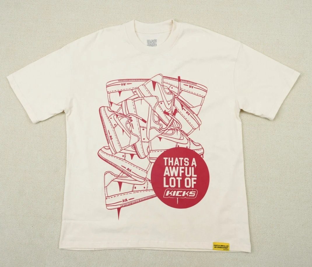 Made of high-weight combed pure cotton, this T-shirt is skin-friendly, breathable, structured and keeps its shape without sagging. It adopts high-definition direct digital printing technology, so the sneaker print is clear, durable and will not fade or crack after repeated washing. It naturally delivers a casual, eye-catching street vibe, is versatile for daily wear and suits all people. It is a well-received hit casual T-shirt highly sought after by young fashion trendsetters in recent years.