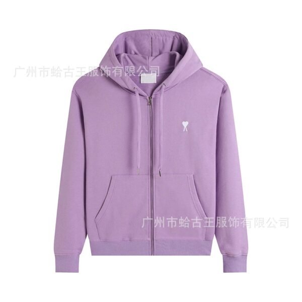 AMI Love Simple Style Purple Hoodie, from the trendy brand AMI. This purple hoodie is made of high-quality fabric with excellent craftsmanship. The simple style shows personality, and it is comfortable and fashionable. As a popular item in the brand series, it has an excellent reputation. Whether paired with casual pants or jeans, it can easily create a trendy look. It is a must-have item in the wardrobe of fashionistas.