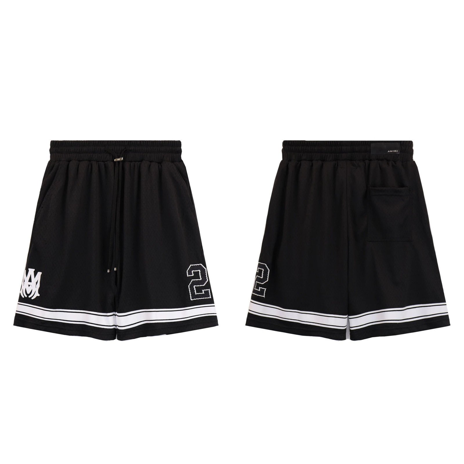 Genuine AMIRI Black Sports Shorts from the American Basketball Style Collection. It is crafted from breathable, high-elastic cotton-blend fabric, finished with distressed edge treatment and custom branded embroidery logo. Featuring retro high-street American style, its loose fit flatter leg shapes effectively. Versatile and comfortable, it is suitable for both sports and casual street outings, and is a popular trendy item highly sought-after in the trend circle with outstanding reputation.