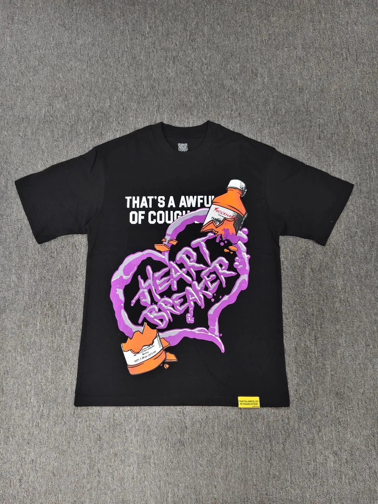 AWFUL Purple Paste Printed Street Style Black T-shirt