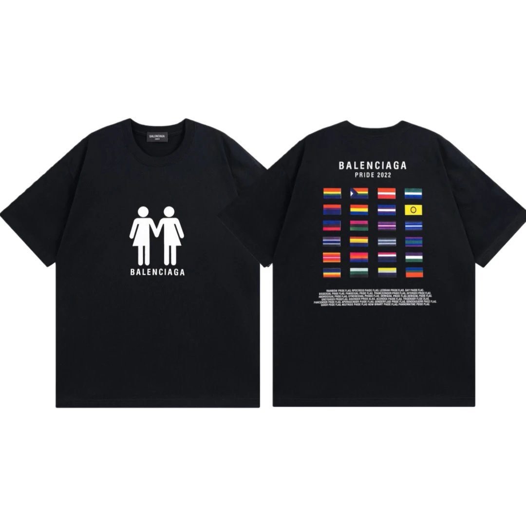 Balenciaga 22 Pride Collection Printed Black Short-Sleeve T-Shirt, crafted from selected premium heavy-weight pure cotton fabric, adopts high-definition color-fixing printing technology, which guarantees no cracking or fading after repeated washing. Featuring avant-garde high-street style and a relaxed oversized silhouette that fits all body types, it is a popular hot item sought after by trendsetters worldwide. It is extremely eye-catching for daily outings when paired with jeans or sweatpants.