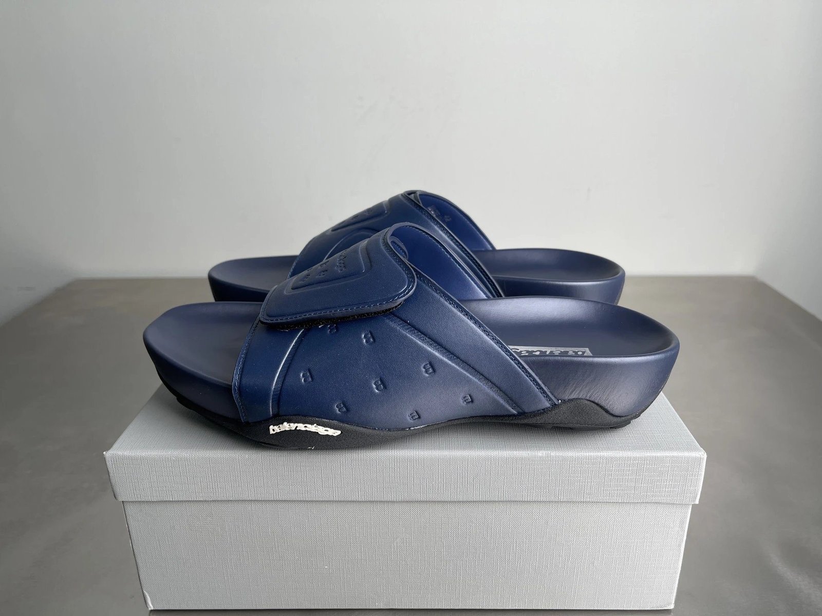 Balenciaga Classic Embossed Trendy Cool Style Navy Blue Slippers