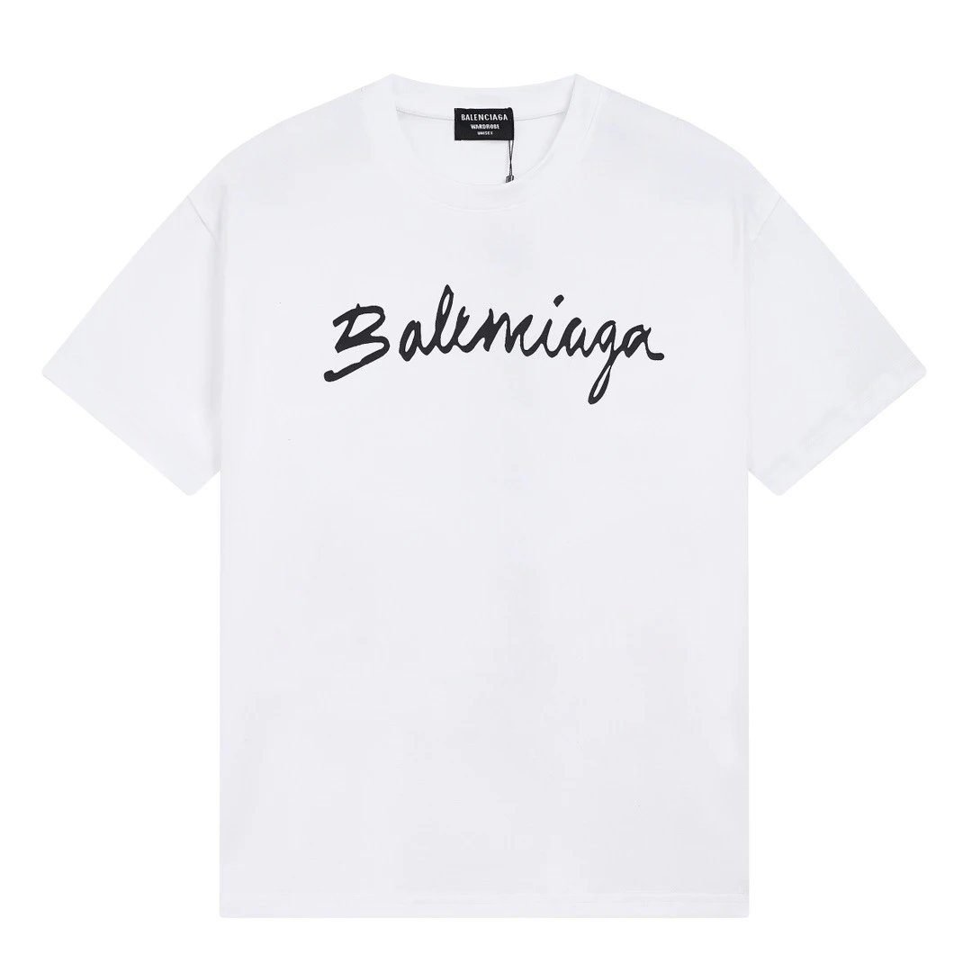 Balenciaga Classic Logo Series Handwritten Signature Casual White T-Shirt is crafted from heavy-weight combed pure cotton fabric, which is skin-friendly, breathable, structured and not easily deformed. It adopts vintage rubber printing process to restore the original texture of the handwritten signature, and features a minimalist high-street cool style. Perfect for daily outings, it can be easily matched with jeans and casual pants, flatters all body types and is easy to style. It is a popular classic item from Balenciaga deeply sought after by fashionistas around the world.