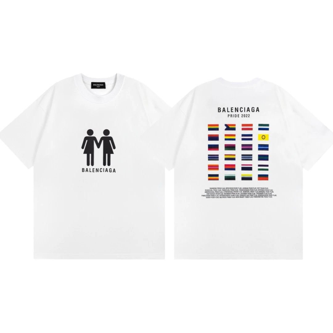 Balenciaga Pride Limited Collection Printed White Short-sleeve T-shirt is made of carefully selected skin-friendly and breathable pure cotton fabric. It adopts high-fidelity color-locking printing technology, which delivers clear patterns that are not easy to fade. Featuring avant-garde cool street style, it is versatile and eye-catching, deeply popular among fashionistas worldwide, and is an extremely sought-after hot item in the global street fashion circle.