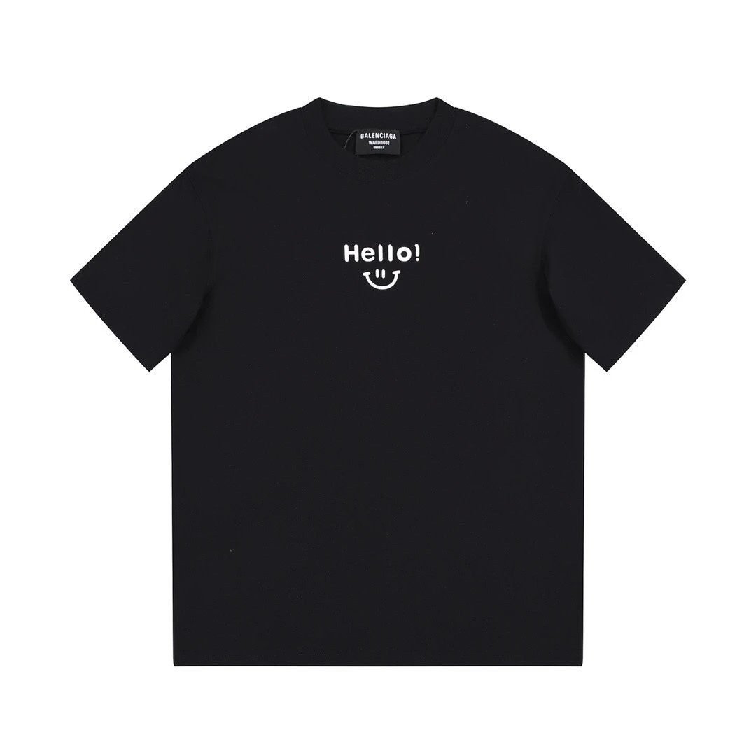 This black street-style short-sleeve T-shirt is from Balenciaga’s smiley face print collection. Crafted from high-count combed pure cotton, it is skin-friendly, breathable, structured, durable and resistant to deformation. It adopts high-definition aligned direct-to-garment printing technology, which ensures clear, firm and crack-proof patterns. As a hot popular item in fashion circles, the loose fit exudes a natural casual street vibe and is deeply favored by trend lovers. It is versatile for daily wear, distinctive and eye-catching.