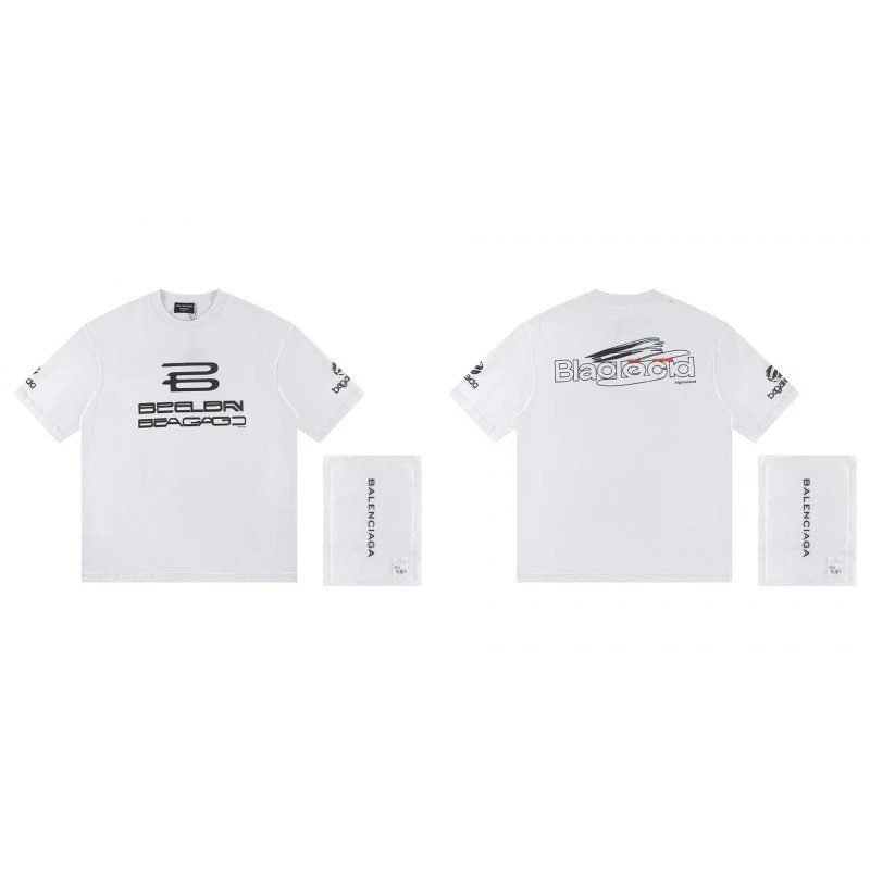 Balenciaga Racing Collection Trendy Printed White Short-Sleeve T-Shirt. It is crafted from heavy-weight skin-friendly pure cotton, which is breathable, structured and resistant to deformation. The high-precision aligned direct inkjet printing process restores the retro racing-themed print, delivering full high-street trendy vibe. It is highly versatile for daily wear and pairs perfectly with jeans, cargo pants and sports pants. This hot style is deeply sought after by trendsetters worldwide with outstanding reputation, and can easily create a cutting-edge eye-catching street atmosphere.