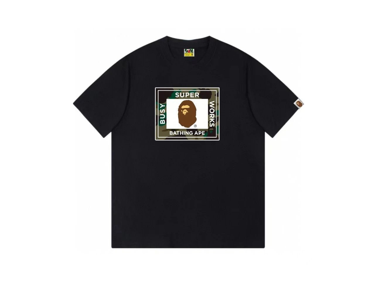 This is a black T-shirt from Bape, belonging to the classic series. It features the brand’s iconic ape head print as a highlight. Made of high-quality pure cotton material, with exquisite printing craftsmanship, it has a street fashion style. As an evergreen in the trendy brand world, Bape has an excellent reputation. This T-shirt perfectly combines the brand’s characteristics with a sense of fashion and is a must-have item in the wardrobe of trendsetters.