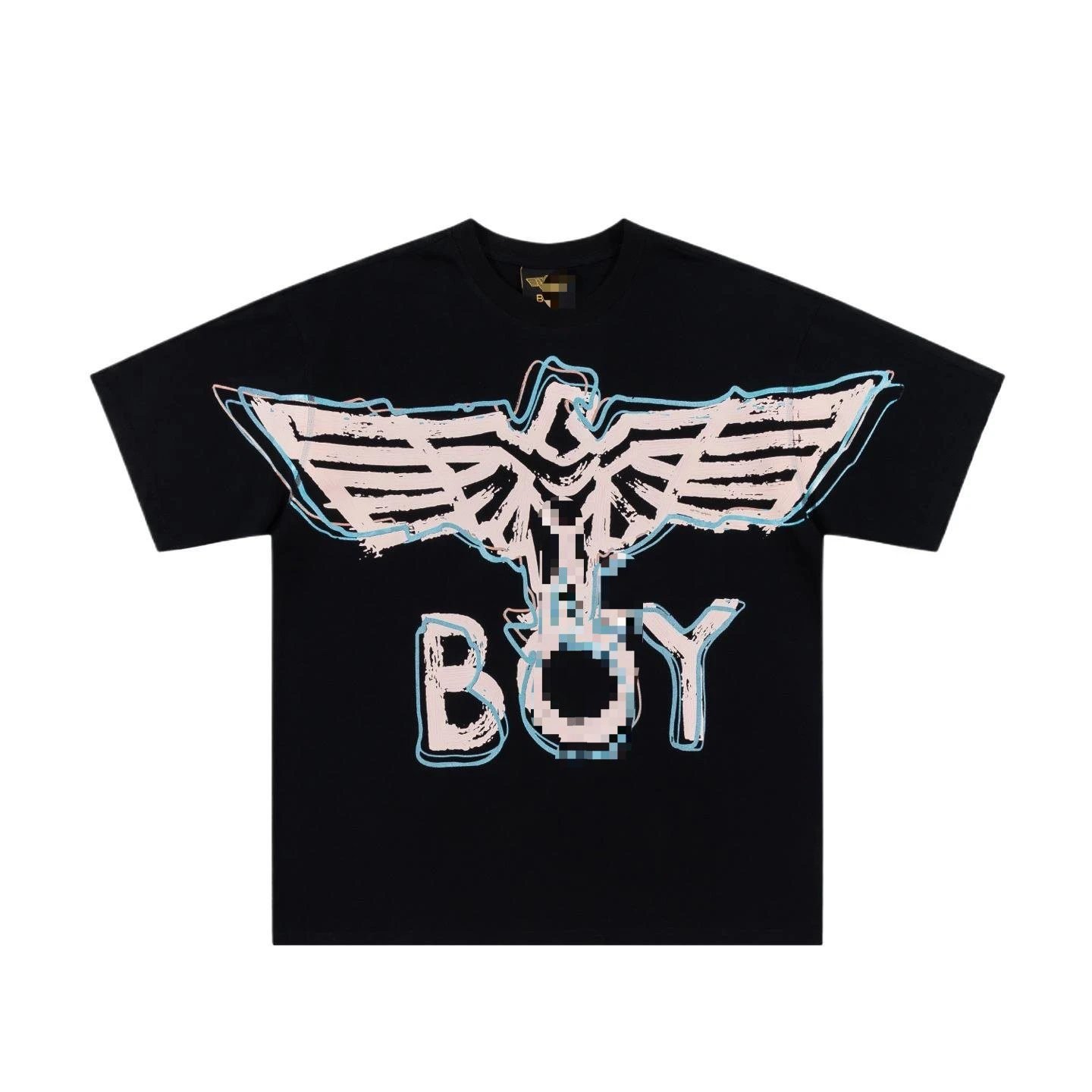 This black short-sleeve street-style T-shirt comes from the Flying Eagle Series, the classic collection of British iconic streetwear brand BOY. Made of heavy-weight 100% pure cotton, it is breathable, skin-friendly and can retain its shape after repeated washing. The flying eagle pattern on the chest is crafted with sophisticated heavy-duty gold foil printing, which is firmly bonded and will not crack or fade. The loose fit is highly inclusive for all body types, and exudes a strong trendy cool street vibe. As a perennial best-selling classic series of BOY, it is deeply favored by trendsetters around the world, and it is versatile and eye-catching for daily street wear.