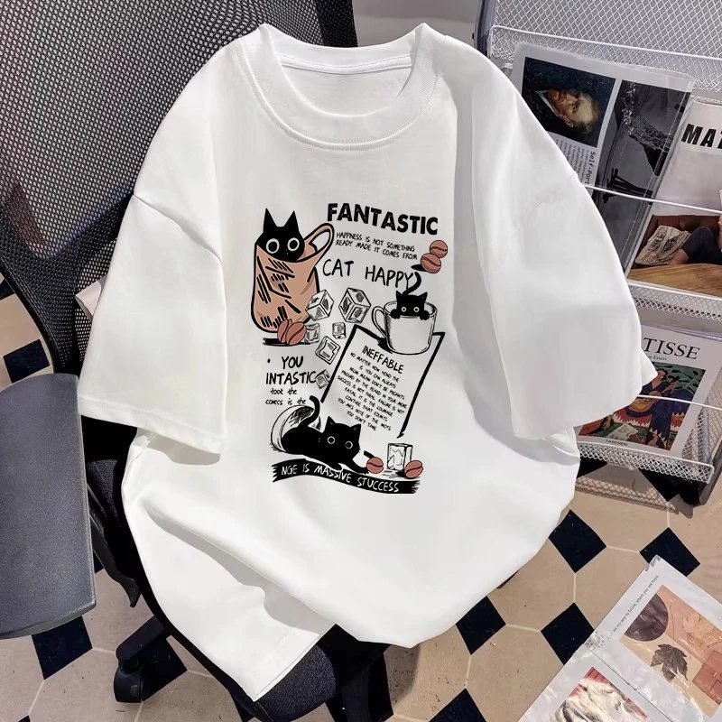 China Selected white T-shirts with cat prints.