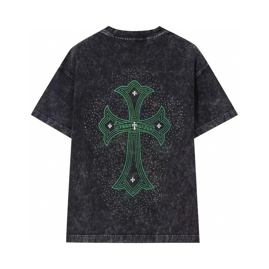 Chrome Hearts Cross Vintage Style Black and Green Short Sleeve T-Shirt