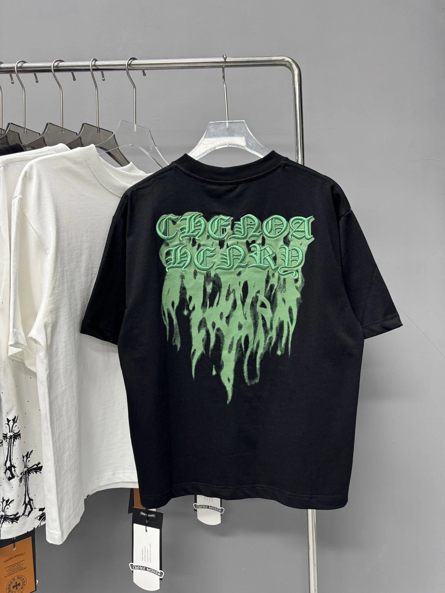 Chrome Hearts Flame Gothic Style Black and Green Short-sleeve T-shirt