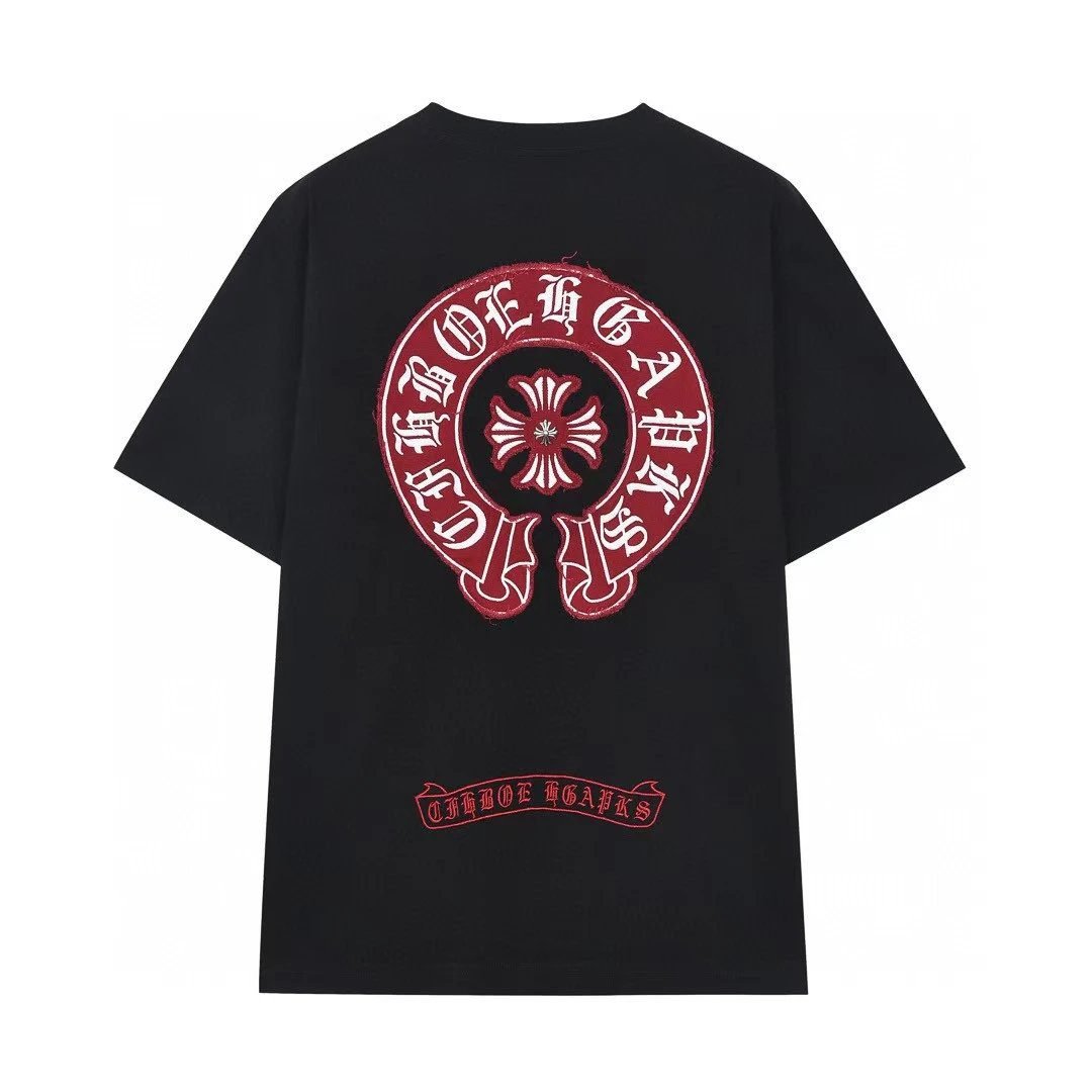 Chrome Hearts Red Horseshoe Print Street Style Black T-Shirt