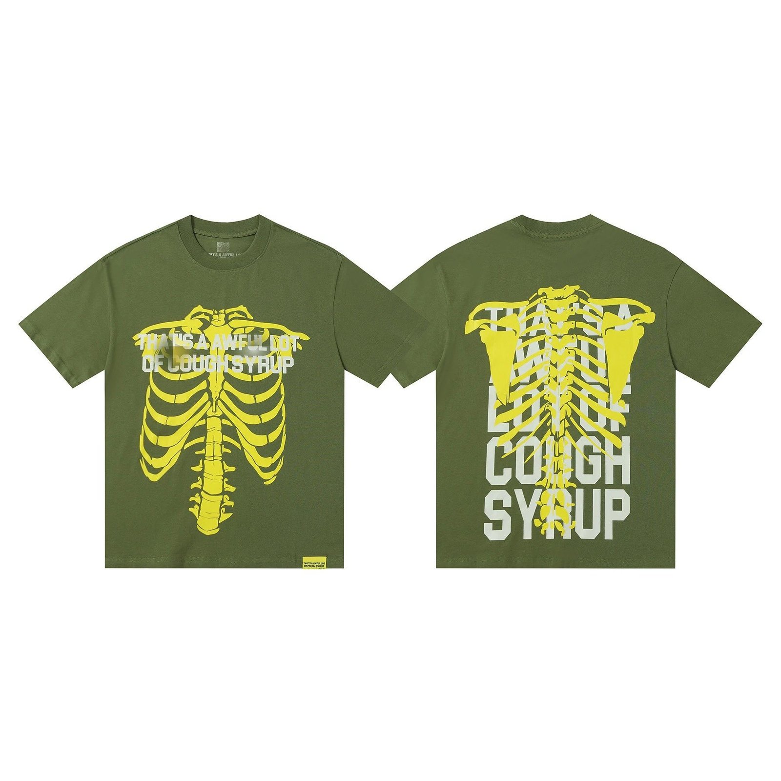 COUGH SYRUP Skeleton Print Street Style Army Green T-shirt