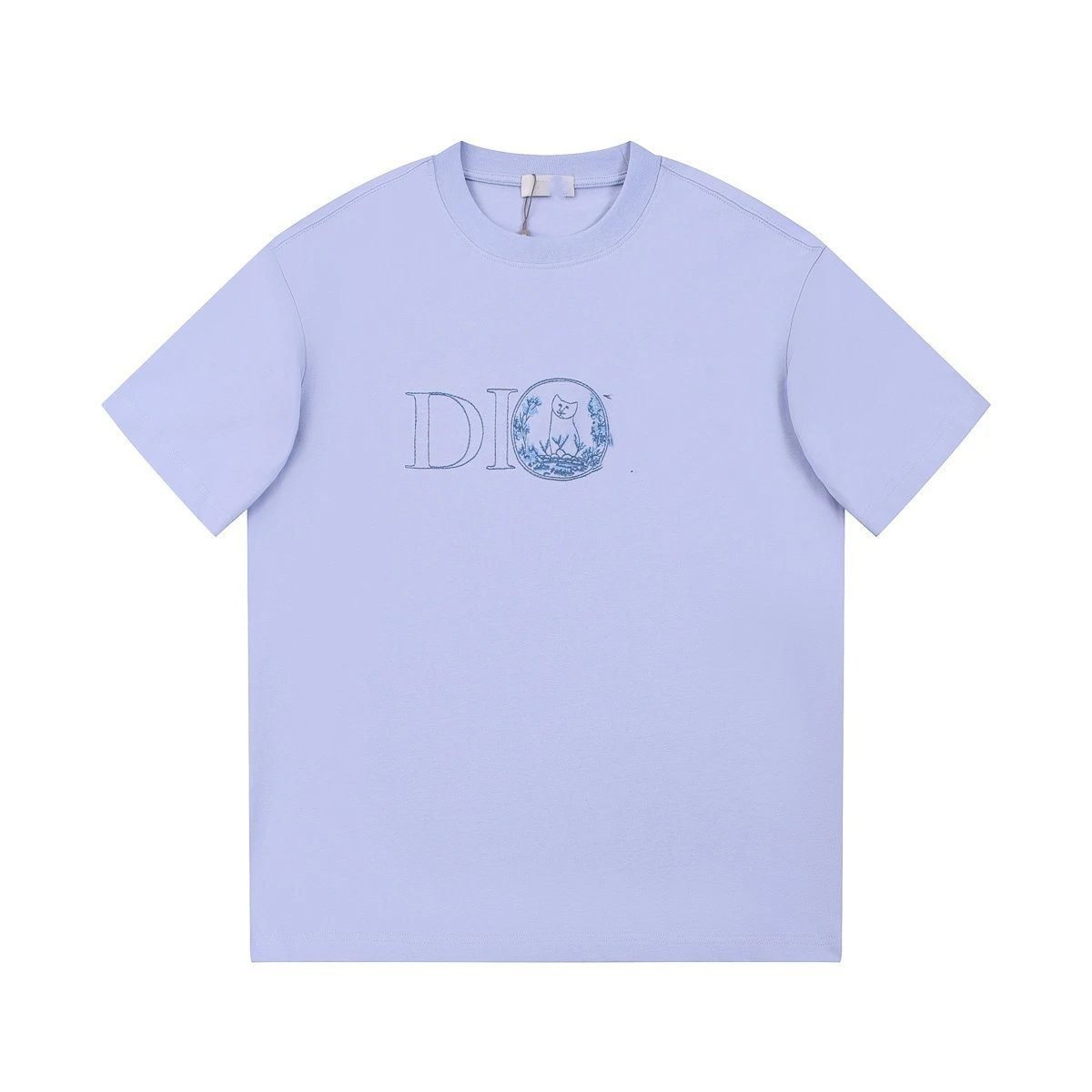 Authentic light purple cat embroidered short-sleeve T-shirt from Dior’s Casual Ready-to-Wear Collection. Made of high-count combed pure cotton fabric, it is skin-friendly, breathable and non-stuffy. The exquisite three-dimensional cat embroidery boasts outstanding recognizability. Featuring a casual and laid-back style, it is deeply favored by fashion trendsetters. It fits perfectly for both daily outings and daily commutes, matches well with jeans and half-length skirts, and is a popular item for high-end casual outfits.