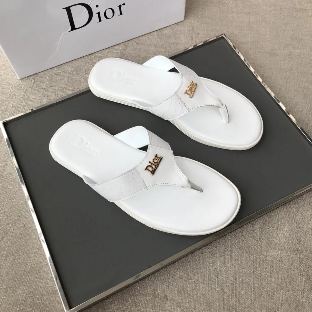 Dior Classic Metal Logo Minimalist Style White Flip-Flops