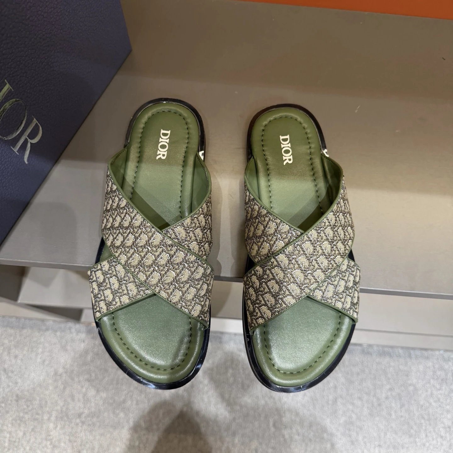 Dior Monogram Retro-style Army Green Slides
