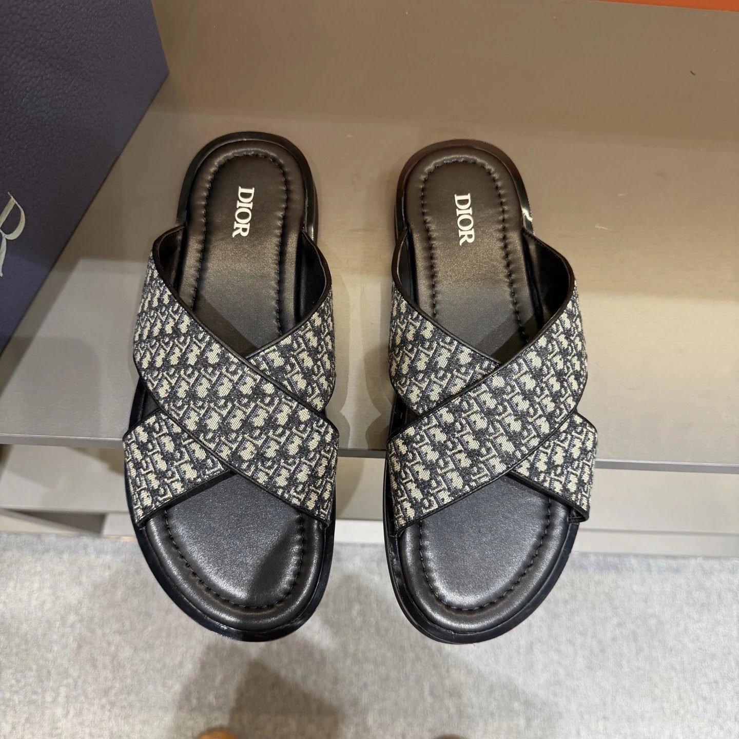 This is Dior’s classic black and gray slide sandal from the iconic Oblique monogram collection. The upper is crafted from custom-aligned jacquard canvas, paired with full-grain leather binding and a non-slip, wear-resistant rubber outsole. The clear and delicate jacquard process resists fading, and this pair exudes an inherent retro and luxurious ambiance. The retro monogram style boasts top-tier recognizability, matches perfectly with all summer outfits, and is a popular street-ready item deeply loved by trendsetters and fashion influencers.