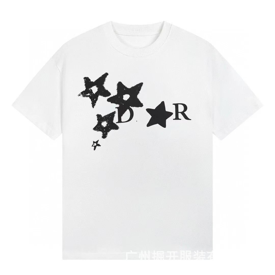 Dior Star Print Trendy & Cool Style White Short-Sleeve T-Shirt
