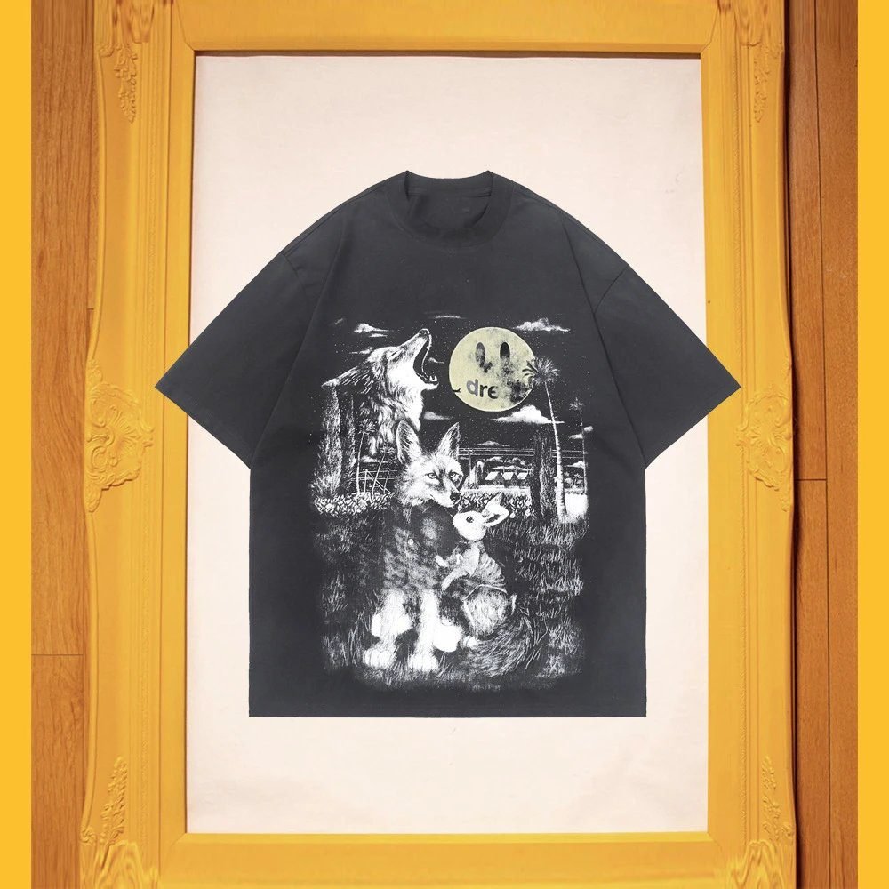 Internet-famous trendy brand DREW’s Animal Print Series black street-style short-sleeve T-shirt is crafted from selected heavyweight pure cotton, which is skin-friendly, breathable and holds its shape well. Adopting high-definition colorfast digital printing technology, it boasts vivid patterns that will not fade. Featuring a loose and versatile fit that suits all body types, this best-selling streetwear item is deeply popular among young trendsetters.