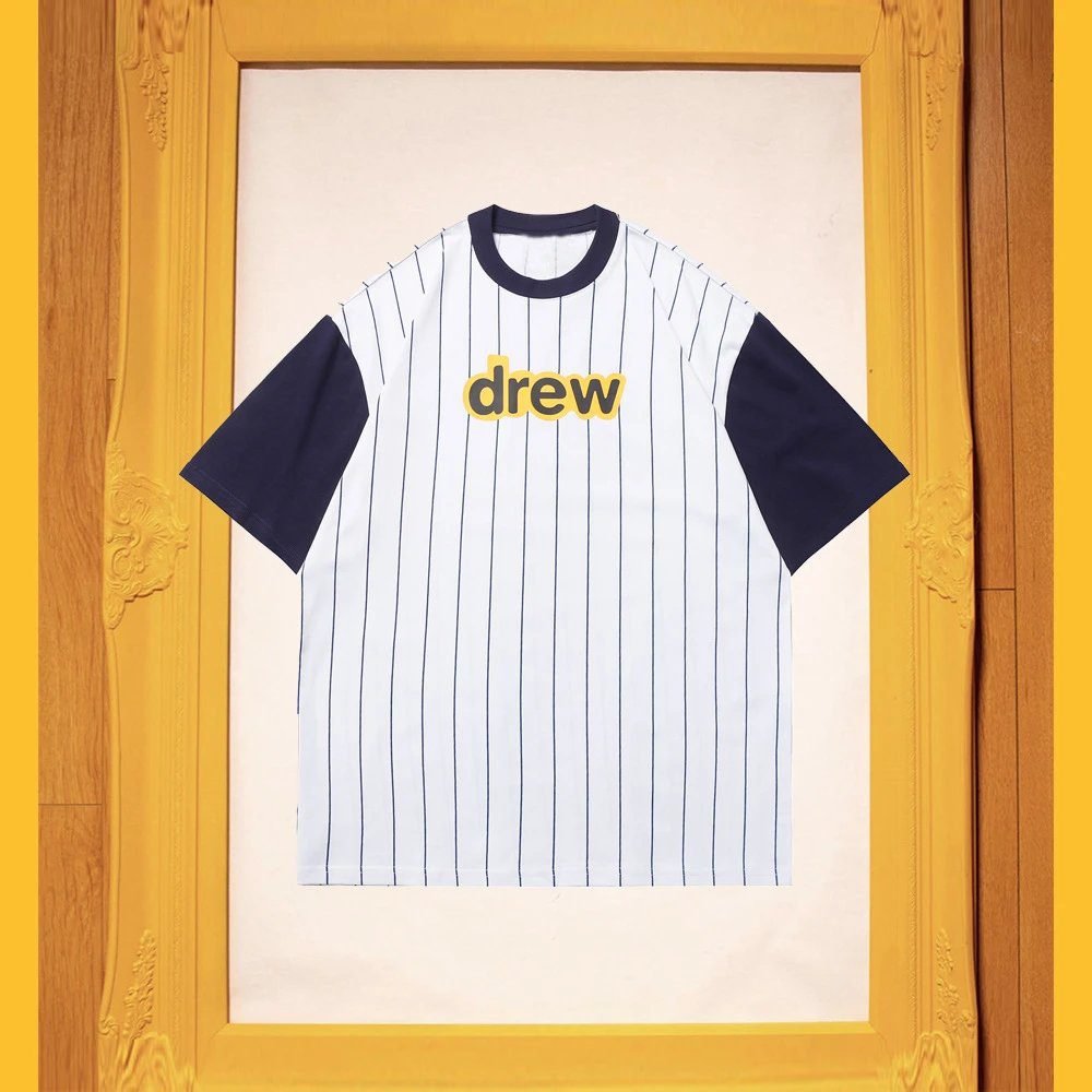 The classic letter-print short-sleeve T-shirt from DREW, the trendy streetwear brand helmed by Justin Bieber, comes in two colors: white and navy blue. Crafted from heavy-weight combed pure cotton, it features the iconic DREW logo made with high-definition colorfast printing technology. Boasting a casual street style and a loose, comfortable fit, it is versatile enough for daily casual outings. It is a hit item deeply sought after by young fashion trendsetters and enjoys an outstanding reputation.