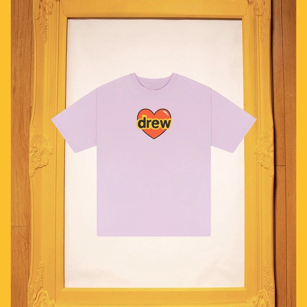 Trendy streetwear brand DREW’s Love Print Collection lavender street-style short-sleeve T-shirt is crafted from skin-friendly and breathable pure cotton. It adopts high-definition colorfast printing technology, which keeps patterns clear and not easy to fade. Boasting a casual and relaxed style and a loose fit that is easy to match and flatters all body types, it is a highly sought-after hot item in street fashion circles and deeply loved by young trend lovers.