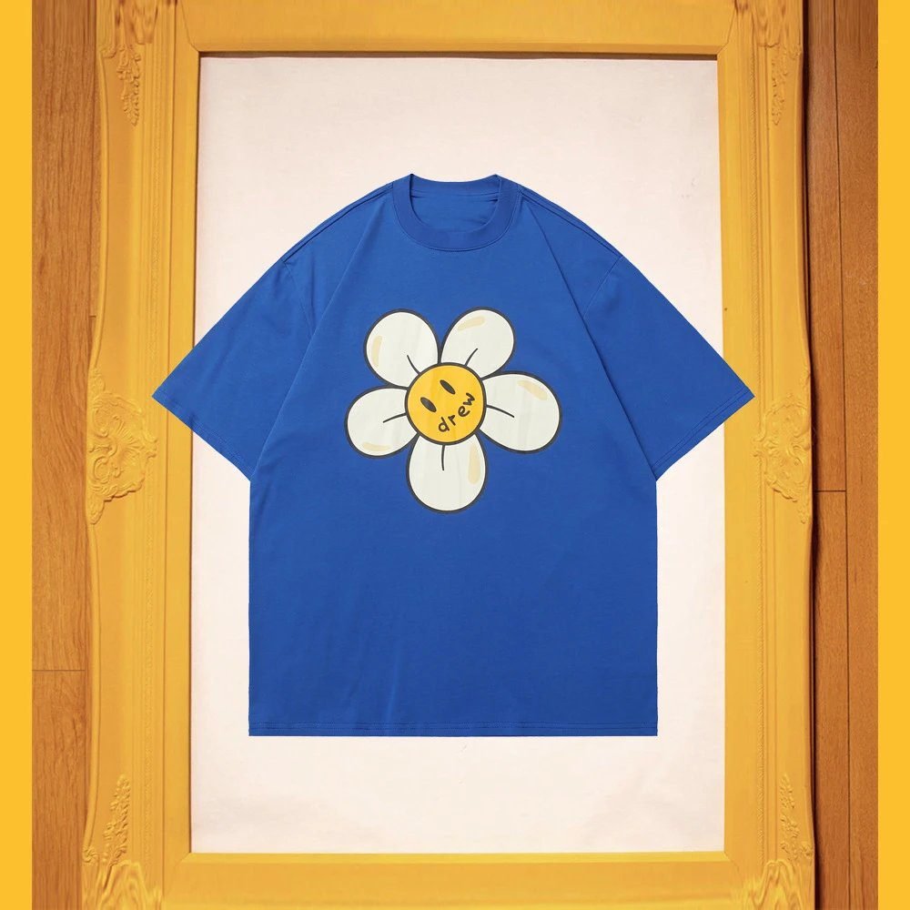 This blue street-style short-sleeve T-shirt from the Smiley Flower Collection of American streetwear brand DREW is made of heavy-weight combed pure cotton. It adopts high-definition direct injection printing technology that won’t fade after repeated washing, and features structured shape, skin-friendly texture, casual style and easy matching. As a popular item of Justin Bieber’s original streetwear brand, it is deeply loved by fashionistas around the world and is a well-reputed eye-catching trendy piece for daily street wear.