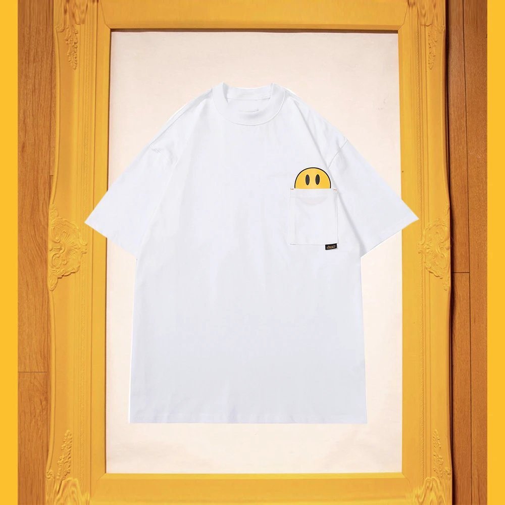 This is the white pocket short-sleeve T-shirt from the classic smiley collection of streetwear brand DREW. Crafted from heavyweight pure cotton, it is skin-friendly, breathable and will not trap sweat. The iconic smiley print is treated with a color-fixing process, making it wash-resistant and fade-proof. Featuring American street casual style, it is loose, versatile and flattering for all body types. As a popular entry-level item of the brand, it is deeply loved and sought after by fashionistas around the world.