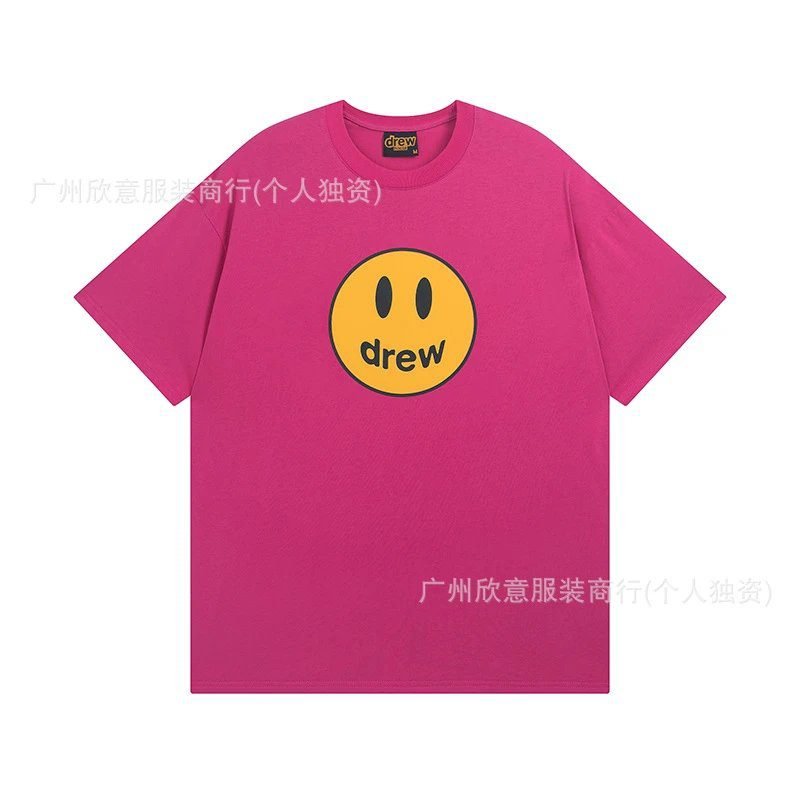 This is a rose red street-style short-sleeve T-shirt from DREW, the trendy streetwear brand helmed by Justin Bieber, belonging to the brand’s classic House Smiley Series. Made of heavyweight pure cotton, it is skin-friendly, breathable, structured and not easy to deform. The iconic smiley print adopts high-definition direct printing technology, which will not crack or fade. It features a casual street style with outstanding recognition, and matches perfectly with jeans and sweatpants. It is a popular item sought after by Gen Z fashionistas, with excellent reputation and sales.