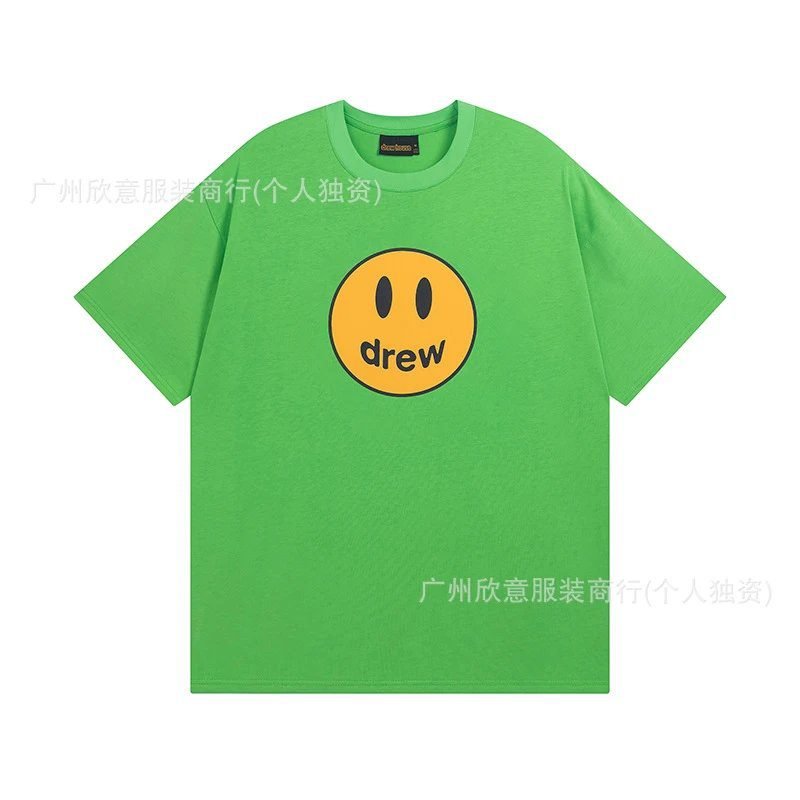 DREW Smiley Face Street Style Green Short Sleeve T-Shirt