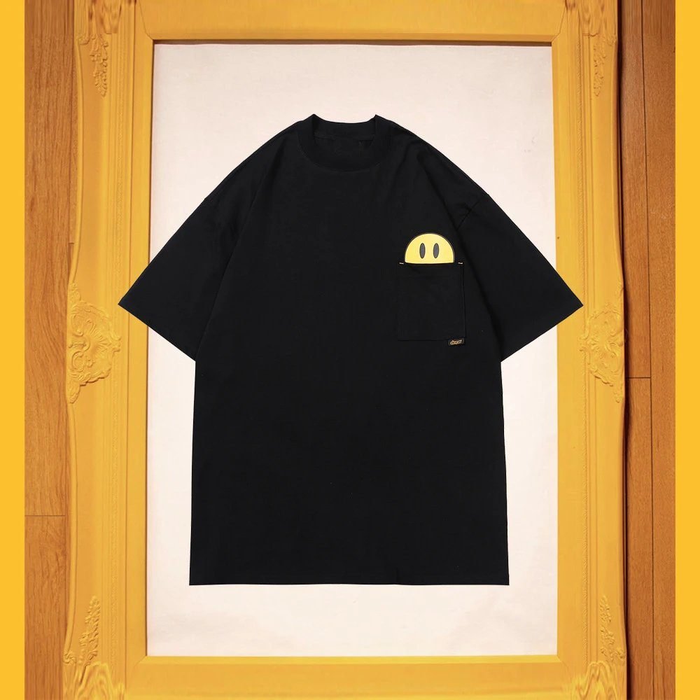 This is a black street-style short-sleeve T-shirt from the popular Smiley Face Series of DREW, Justin Bieber’s original fashion brand. It is crafted from heavyweight combed pure cotton, which is skin-friendly, breathable, structured and resistant to deformation. The iconic smiley logo is made with eco-friendly foaming printing technology, which will not crack or fade. The loose fit is highly forgiving of all body types, exuding a casual, relaxed and inherently trendy vibe. It is a hit item highly sought after by street fashionistas around the world, and allows you to easily create an eye-catching look for daily outings.