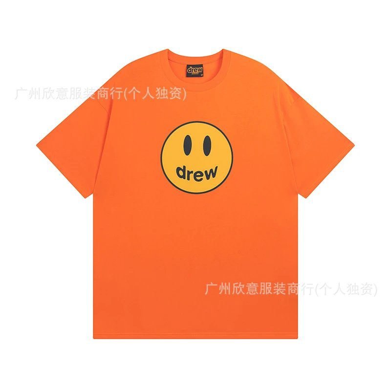 This is the orange short-sleeve T-shirt from the smiley face collection of DREW, the trendy streetwear brand helmed by Justin Bieber. Made of premium heavyweight pure cotton fabric, it is breathable, skin-friendly, comfortable and durable. The iconic smiley logo adopts eco-friendly direct printing technology, which will not crack or fade. Featuring American street casual style and a loose fit, it is casual and versatile, pairing perfectly with jeans and sweatpants. It has been a hugely popular hot item sought after by fashionistas worldwide in recent years, and has won wide acclaim from fashion enthusiasts.