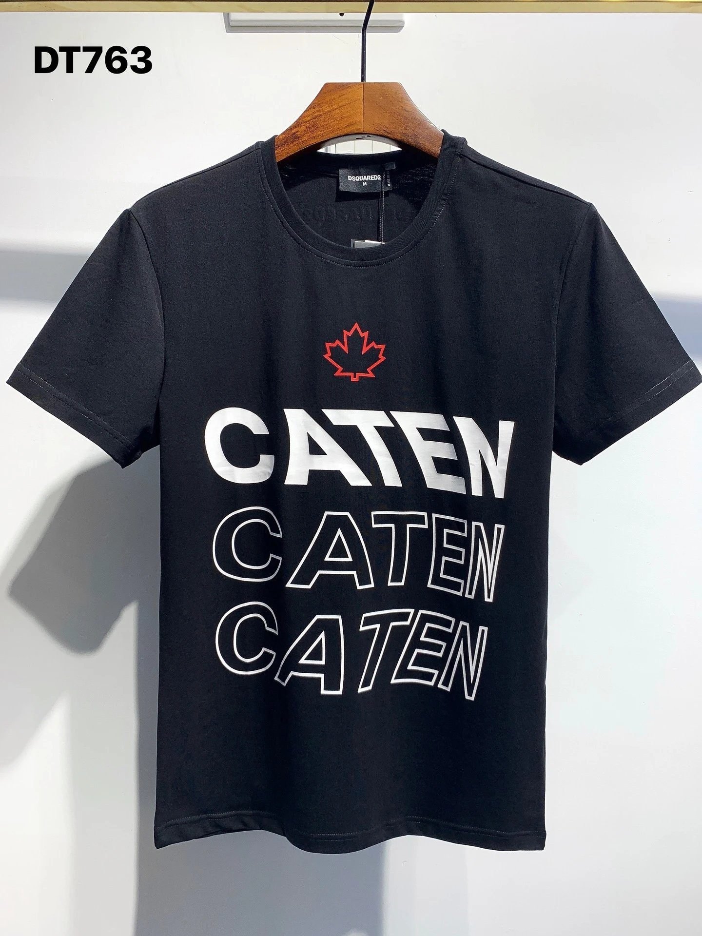 This is an iconic printed black trendy T-shirt from the CATEN Collection of DSQ/DSQ2, a well-known Italian streetwear brand. Made of selected heavyweight pure cotton fabric, it is breathable, skin-friendly, well-structured and can keep its shape well. The personalized CATEN logo print adopts high-fastness heat transfer technology, which will not crack or fade after repeated washing. Featuring a cool, eye-catching street style, it is a versatile item highly sought after by trendsetters nowadays. It looks extremely stylish paired with jeans or cargo pants, and is a classic trendy piece that has won widespread great reputation.