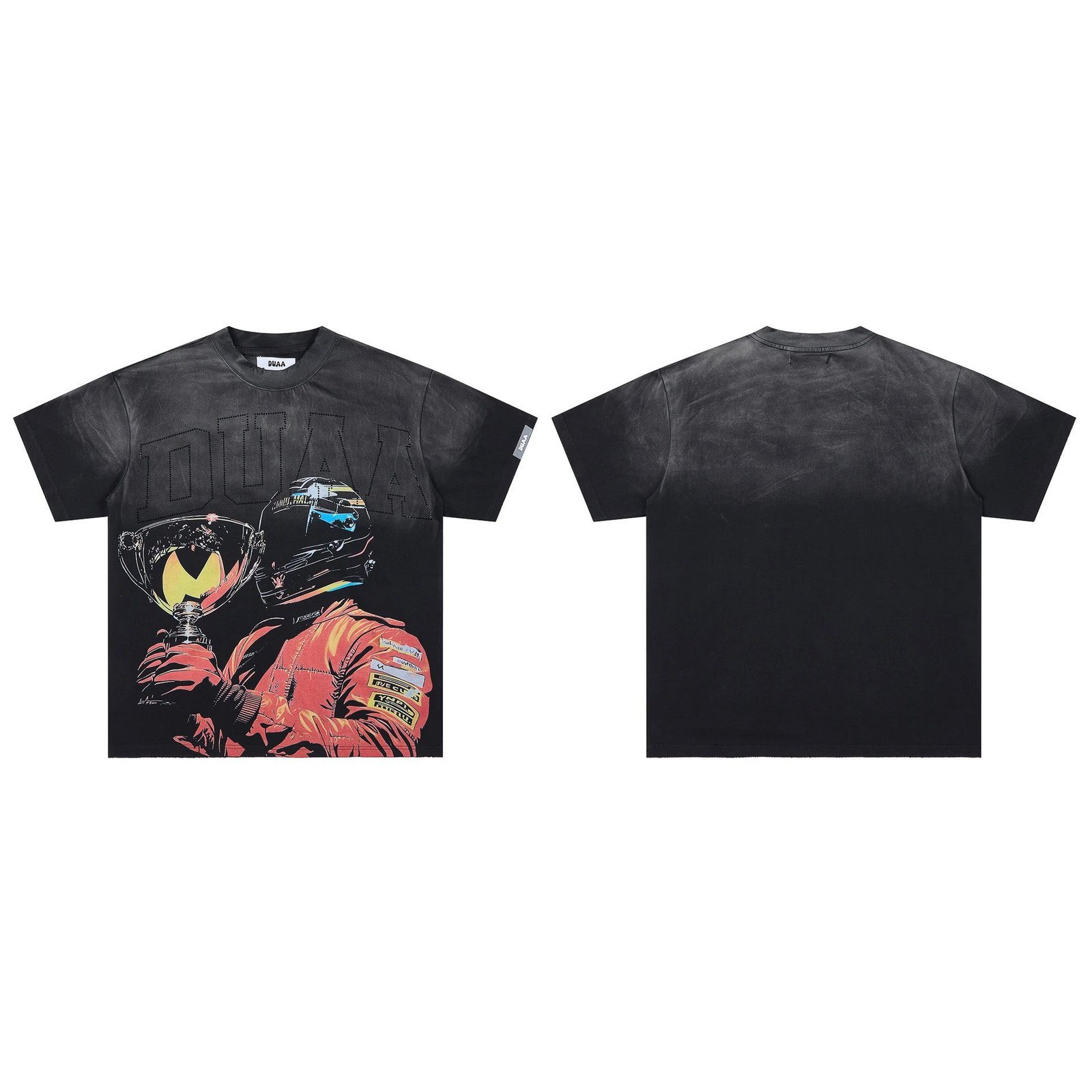DUAA Racing Print Series Vintage Distressed Black T-Shirt