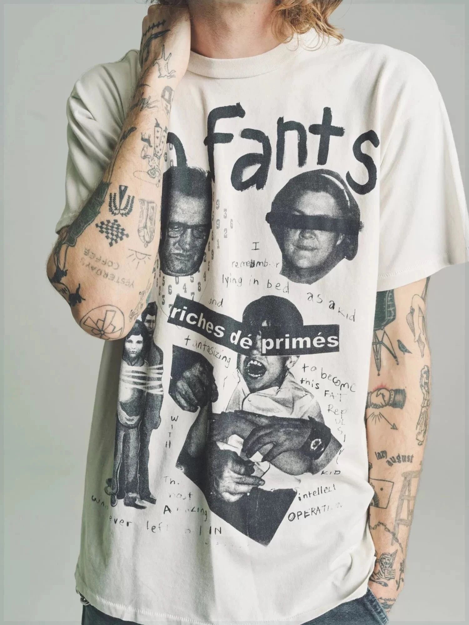 ERD GRJKD Portrait Print Vintage Off-white T-shirt