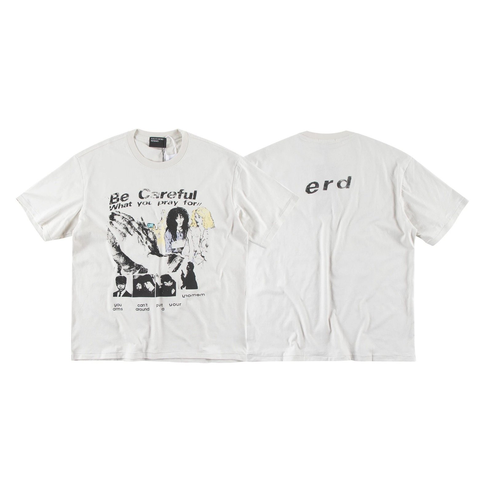 This off-white short-sleeve T-shirt comes from the portrait print series of ERD GRJKD, a hot streetwear brand trending in fashion circles. Crafted from selected premium heavyweight skin-friendly pure cotton and produced with distressed vintage printing technique, it features American retro street style, looks extremely photogenic when paired with denim or workwear, and is eye-catching and versatile to wear. It is a highly reputable trendy item deeply sought after by fashion enthusiasts.