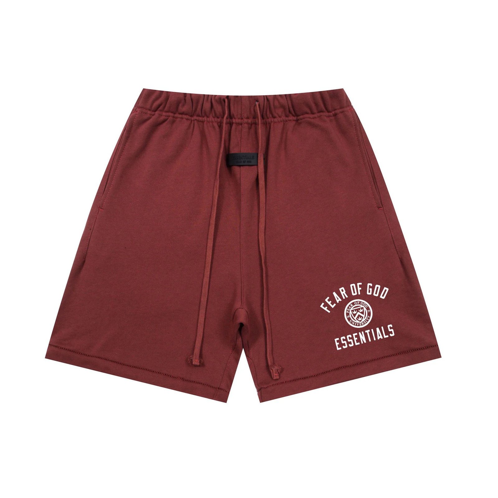 ESSENTIALS Casual Burgundy Shorts. Burgundy shorts. Made of comfortable fabric with simple craftsmanship. Street trendy style shows personality. As a single product of the ESSENTIALS series, its version is neat and has strong matching properties. It has a good reputation in the trendy circle and is a must – have choice for trendy people to create fashionable looks.