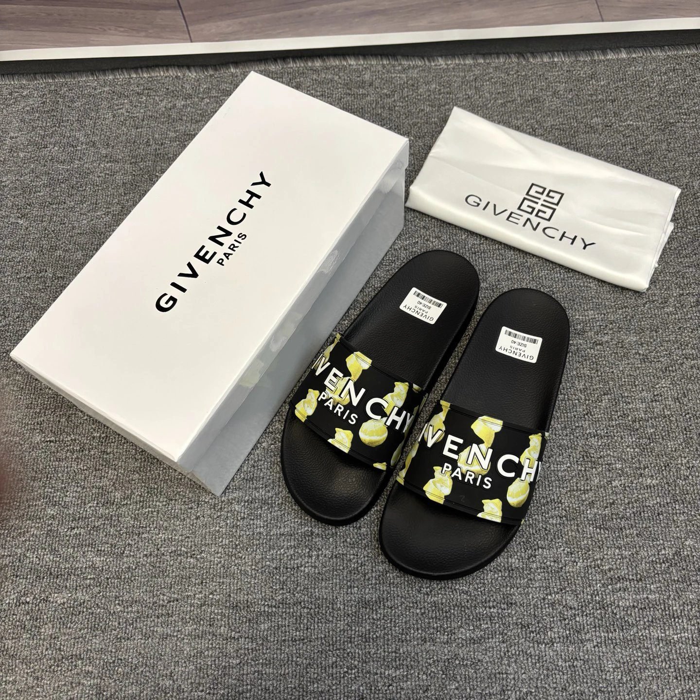 Givenchy Streetwear Letter Print Black and Yellow Slide Sandal