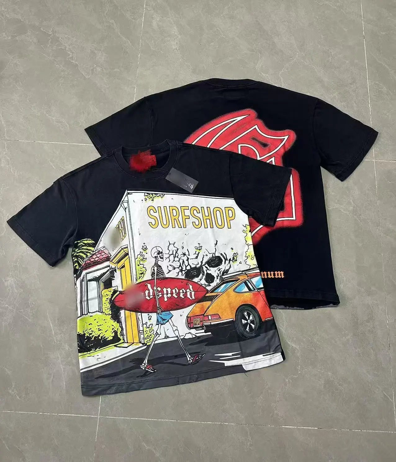 Crafted from premium heavyweight pure cotton, it is skin-friendly, breathable and crisp enough to hold its shape well. Adopting color-fixing screen printing technology, it will not crack or fade after repeated washes. Featuring the uninhibited retro American street style, it boasts eye-catching design with high recognition, and is deeply popular among young trendsetters. It matches perfectly with jeans and workwear for daily wear, and is a well-received viral hit in the trend circle.