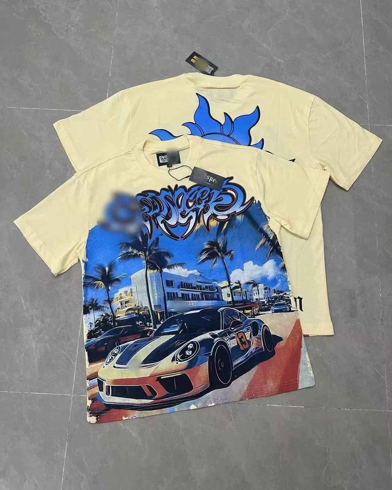 GOD Sports Car Print Street Style Beige Short Sleeve T-Shirt