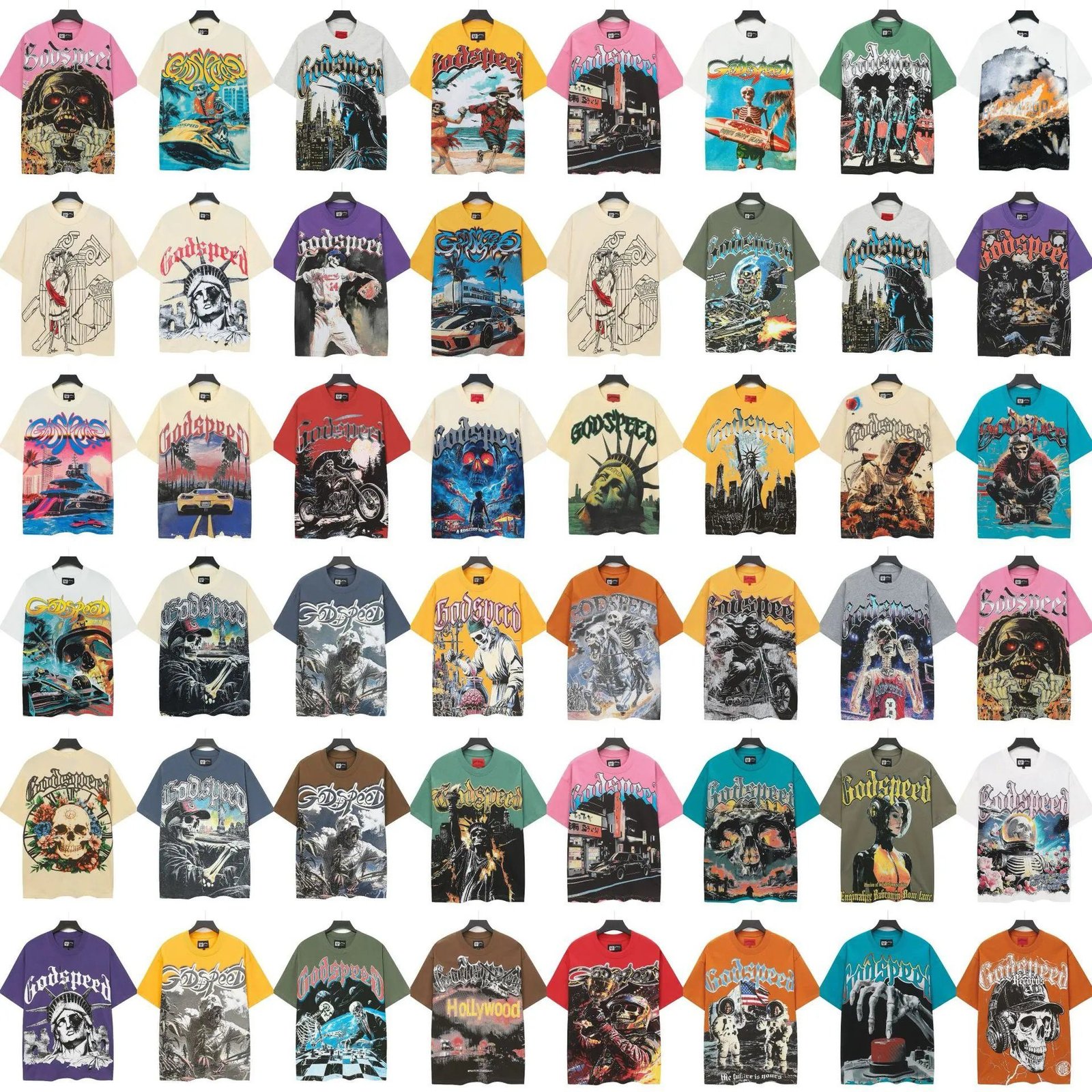 Godspeed, an American streetwear brand, offers the multi-color T-shirts of its Skull Print Street Collection. Made of heavyweight combed pure cotton, it is breathable, skin-friendly and won’t trap sweat. The skull print is made via direct-to-garment digital printing technology, and it will not crack or fade after repeated washing. Featured in distinctive street style, this T-shirt comes in multiple colors to match all kinds of outfits, and it is a well-acclaimed eye-catching staple extremely popular among streetwear circles.