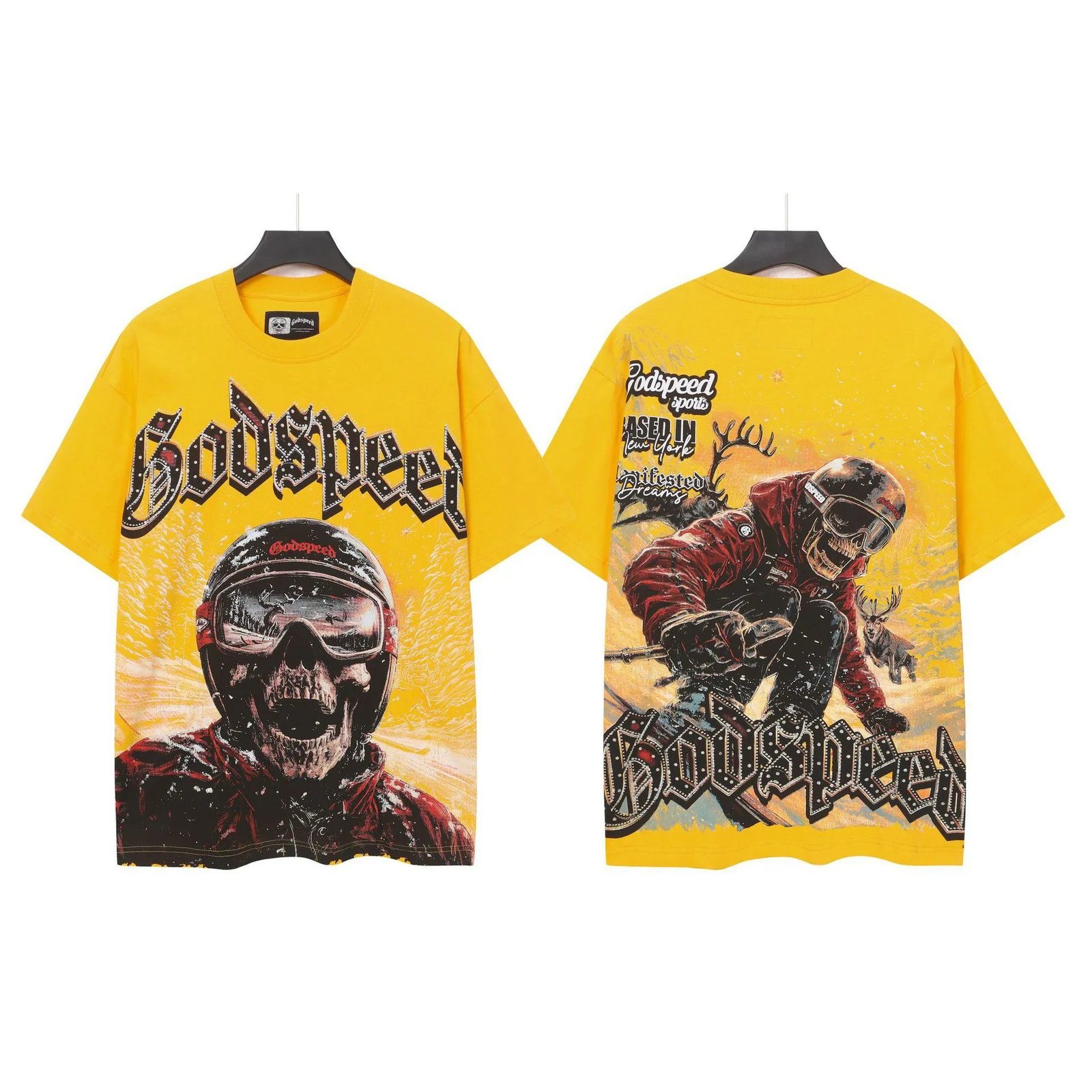 Godspeed Skull Skiing American Retro Yellow T-Shirt
