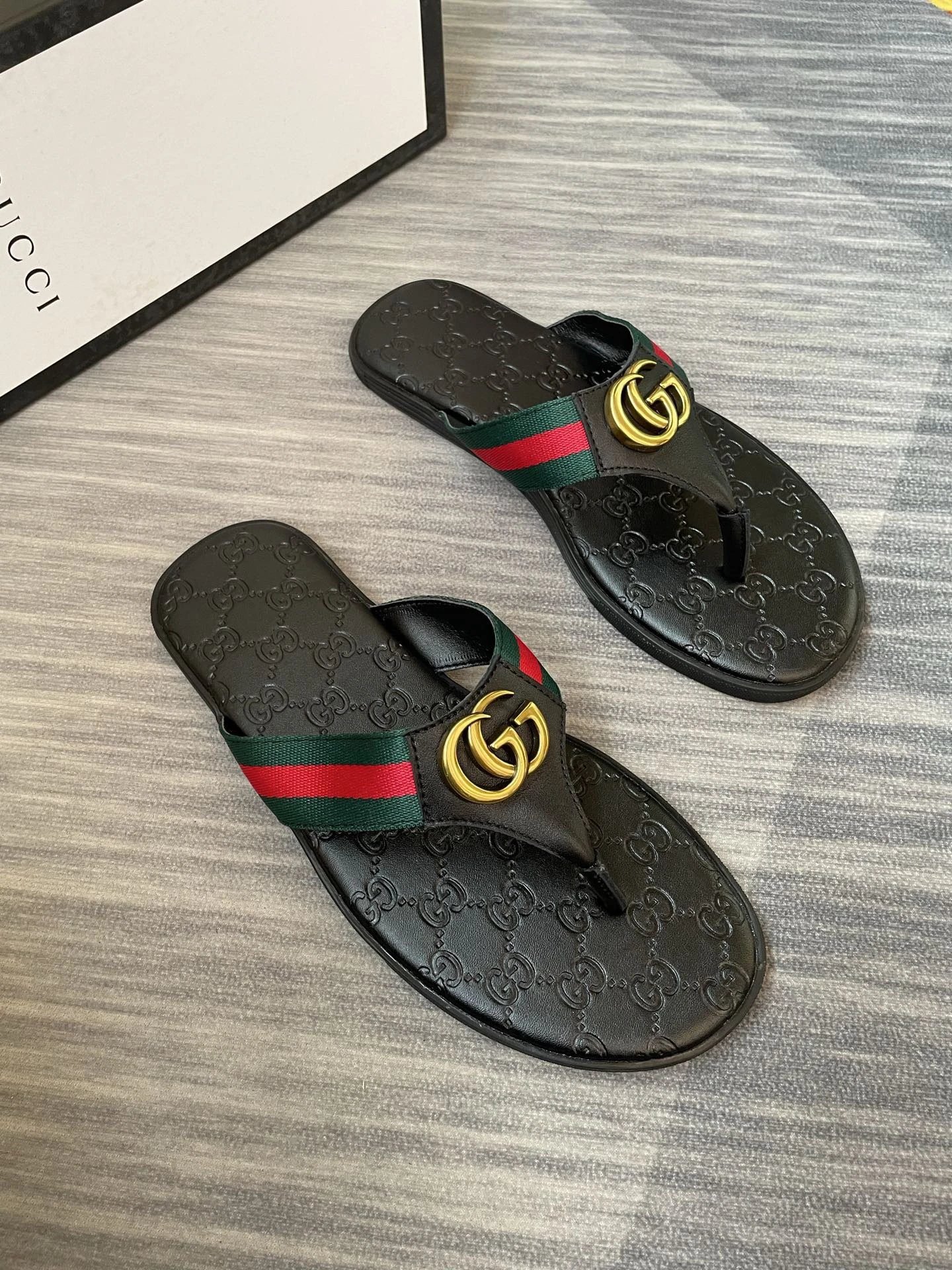 Gucci Double G Classic Retro Series Black Flip Flops is a classic timeless footwear style of the brand. The vamp strap is crafted from high-quality wear-resistant rubber, with the iconic double-G logo embedded via the brand’s high-precision embossing process, boasting clear texture, firm structure and excellent fade resistance. The outsole is flexible, slip-resistant and delivers a comfortable foot feel. Featuring a classic retro luxury street style as a whole, this pair of flip flops matches all kinds of casual summer looks, is widely sought after by fashionistas around the world with an outstanding reputation, and is a popular item to elevate personal style for summer outings.