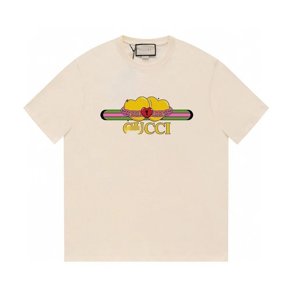 Gucci Double Heart Print Series Off-white Casual T-Shirt is made of high-count combed pure cotton, featuring precision-aligned printing technology that is firm, fade-resistant, skin-friendly and breathable. Boasting a casual style, it is versatile and fits all body types. As a popular Gucci item highly sought after by young trendsetters, it enjoys an outstanding reputation.