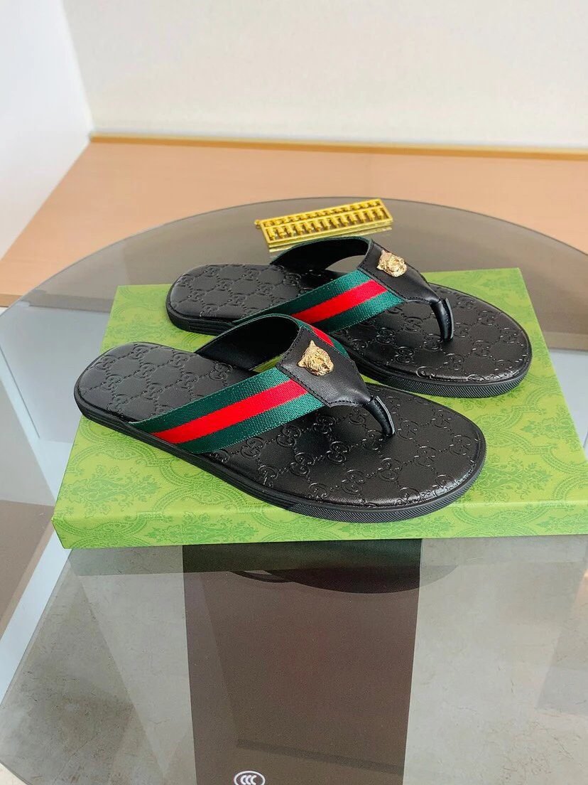 Gucci Tiger Head Webbing Light Luxury Style Black Flip-Flops
