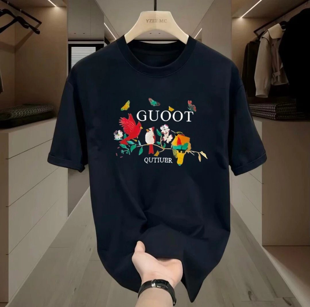 GUOOT floral and bird printed short-sleeve T-shirts under China Selected take unique floral and bird prints as the series feature, with bright and eye-catching colors. Made of high-quality pure cotton material, it has a soft and comfortable hand feel. With exquisite printing technology, the patterns are lifelike. The style is trendy and individual, showing unique taste. It has a good reputation and is a fashion choice for trendy people to go out on the street. It can be easily matched with various bottoms to show a different style.
