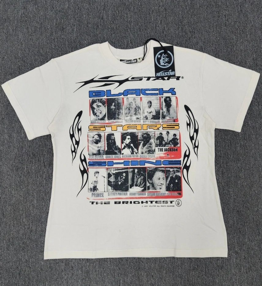 This is an off-white short-sleeve T-shirt from the Vintage Collection of **Hellstar Black Star**, an American high street streetwear brand. Crafted from heavyweight skin-friendly pure cotton fabric and treated with a vintage washing process, it is decorated with the brand’s iconic Black Star-themed print. It features a sturdy texture that won’t show through, and is comfortable and breathable to wear, presenting an authentic American retro street style. The loose fit has great inclusiveness for various body types, and can be easily matched with jeans and sports pants. It is a highly sought-after popular item in the current streetwear circle, and is deeply loved by fashion enthusiasts.