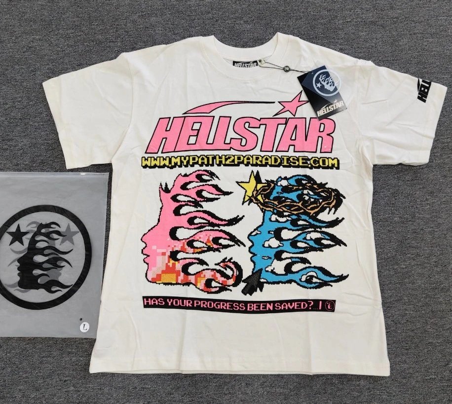 Hellstar Pixel Flame Print Street Style Off-white T-shirt