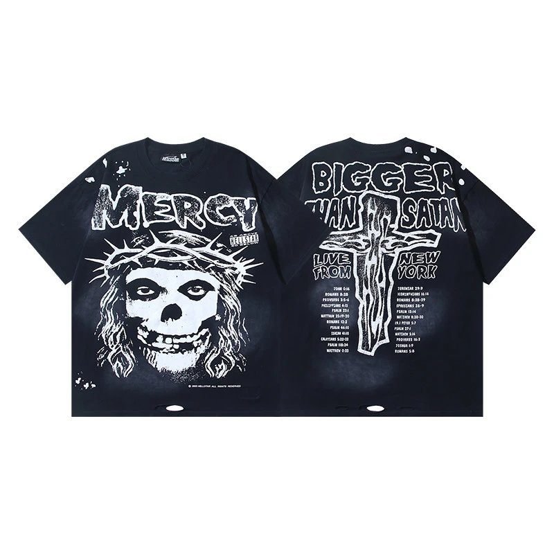 American high-street streetwear brand Hellstar’s black skull print short-sleeve T-shirt from the classic dark series is made of heavy-weight pure cotton, which is skin-friendly, breathable, structured and not easily deformed. The skull logo is crafted with high-definition digital direct printing technology, featuring great color retention, durability and no cracking. With an overall dark street style and top-tier recognizability, it matches well with workwear and jeans, is deeply sought after by cool trend lovers around the world, and is an extremely popular breakout trendy hit in recent years.