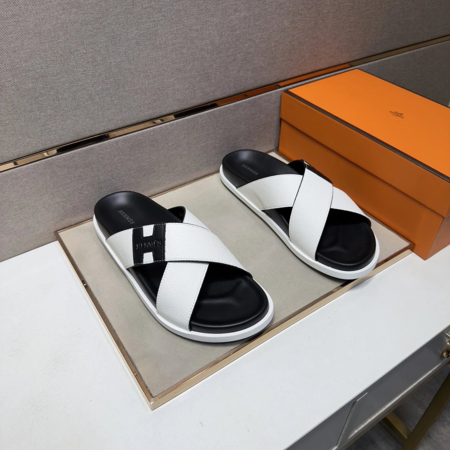 This cross-strap slide is from Hermès’ classic casual collection. It features a minimalist black-and-white color-block design. The upper is crafted from carefully selected premium full-grain cowhide, paired with a wear-resistant and anti-slip rubber outsole. It adopts the brand’s century-old exquisite edging and stitching craftsmanship, boasting a minimalist high-end style with outstanding texture. It is versatile enough to match well with jeans, casual outfits and vacation dresses, and is a classic slide style widely acclaimed in the luxury trend circle and deeply sought after by fashion trendsetters.