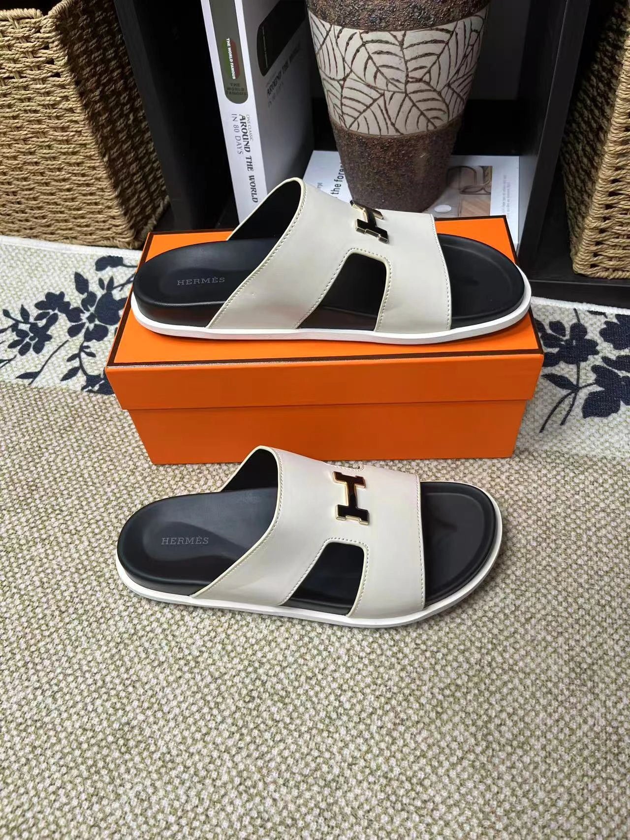 Hermès H Series Light Luxury Style Off-white Slide Sandals